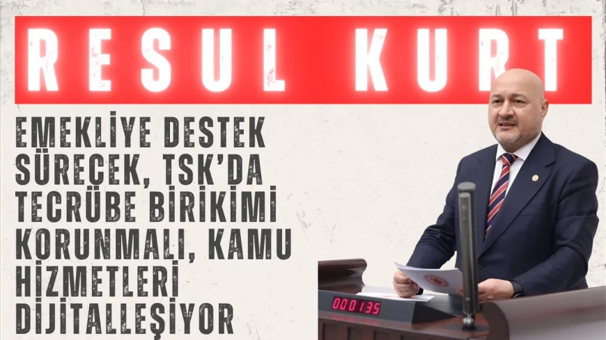 AK Parti Adıyaman Milletvekili Resul Kurt, TBMM Genel Kurulu’nda 217 sıra sayılı torba kanun teklifinin tümü üzerine AK Parti Grubu adına konuştu. Kurt, teklifin Türk Silahlı Kuvvetleri’nden emekli maaşlarına, turizmden iş gücü piyasasına kadar birçok düzenlemeyi içerdiğini ifade etti.