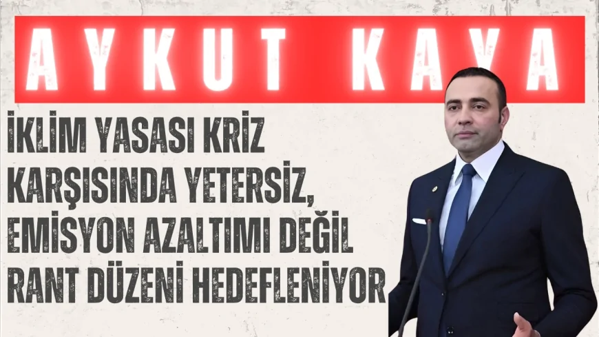 CHP Antalya Milletvekili Aykut Kaya, 2 Temmuz 2025 tarihinde TBMM Genel Kurulu’nda yaptığı konuşmada, görüşülmekte olan İklim Kanunu Teklifi’nin iklim krizine çözüm sunmak yerine karbon ticareti odaklı, belirsiz ve işlevsiz bir metin olduğunu ifade etti. Kaya, yasa teklifinin toplumun tüm kesimlerini gözetmeyen ve çevresel adaleti zayıflatan bir anlayışla hazırlandığını belirtti.