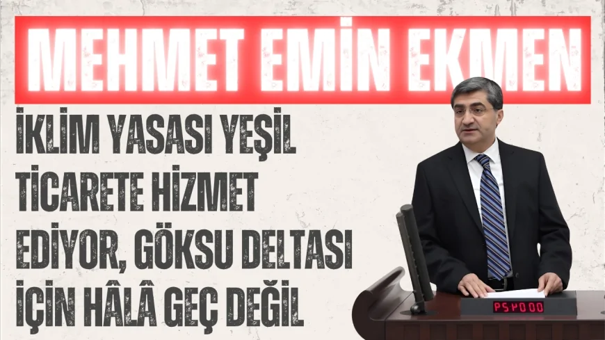 DEVA Partisi Genel Başkan Yardımcısı ve Mersin Milletvekili Av. Mehmet Emin Ekmen, 2 Temmuz 2025’te TBMM Genel Kurulu’nda İklim Kanunu Teklifi görüşmeleri kapsamında yaptığı konuşmada, hem yasanın yapısal eksiklerini hem de çevresel önceliklerin göz ardı edilmesini sert sözlerle eleştirdi.