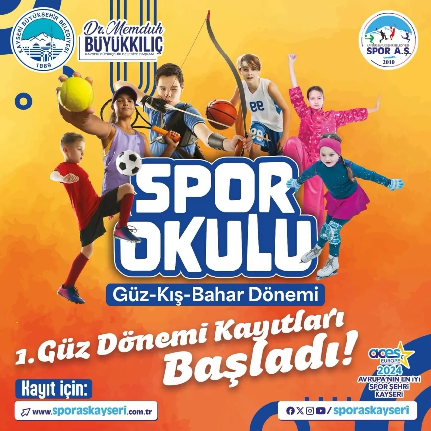 Kayseri Büyükşehir Belediyesi Spor A.Ş. tarafından düzenlenen 1. Güz Dönemi Spor Okulları için kayıtlar başladı. 8 Eylül’de başlayan başvuruların ardından kurslar, 30 Eylül 2025’te başlayacak ve 2 Kasım 2025’te sona erecek.