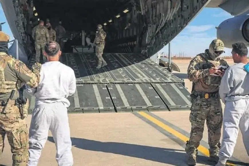 ABD Savunma Bakanlığı (Pentagon), düzensiz göçmenlerin Guantanamo Körfezi Deniz Üssü’ne taşındığını gösteren bir video yayımladı. Yaklaşık 1.5 dakika uzunluğundaki görüntülerde, elleri, ayakları ve belleri zincirlenmiş göçmenlerin uçaktan indirildiği ve her birinin iki ABD askeri tarafından kollarından tutularak üsse götürüldüğü görülüyor.